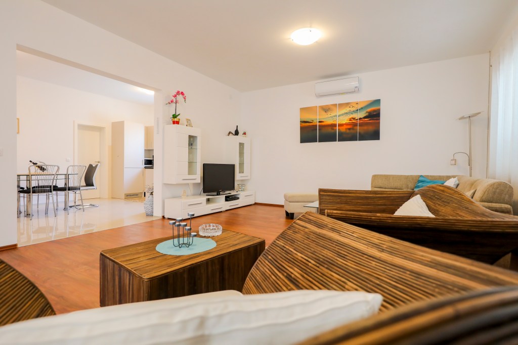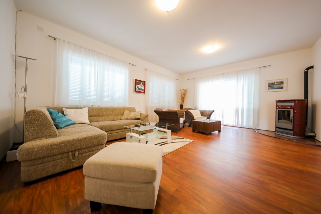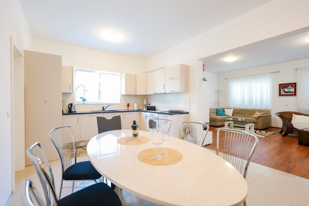 Villa Galetta is one of the most modern holiday homes on the island of Ist. Newly built house with a large garden is located in a quiet area only 35 meters from the sea. It is perfect for families or groups of friends because it can accommodate up to 8 people. On 175 m2 there are 4 bedrooms, well equipped kitchen with dining room, living room and two bathrooms with shower. From the living room comes to a large terrace with seating furniture and an outdoor grill. The specialty of this house is a large playground for children on the upper floor. The villa is also fully air conditioned.