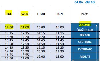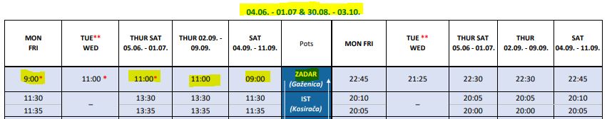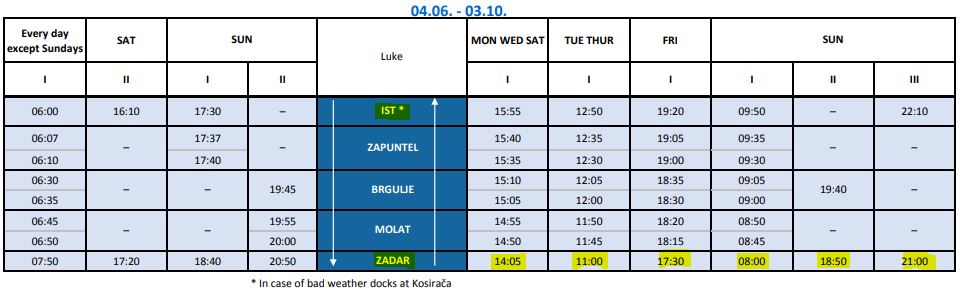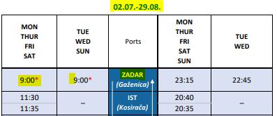 Time Table catamaran (fast boat but takes only passangers) – departs from Zadar old port – Jadrolinija